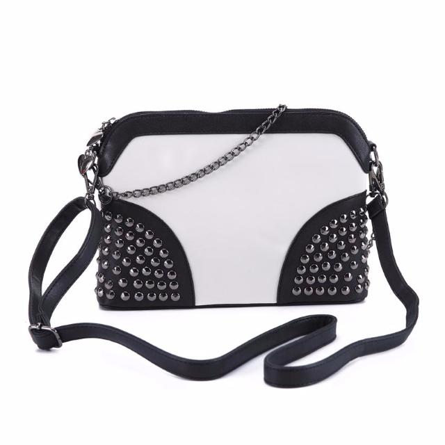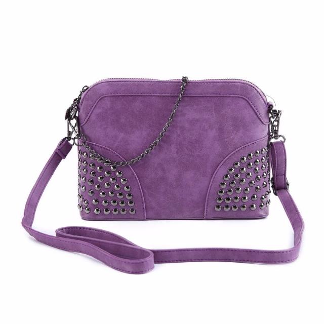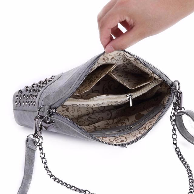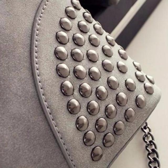 Nubuck Leather Shoulder Bag with Chain Strap and Rivets