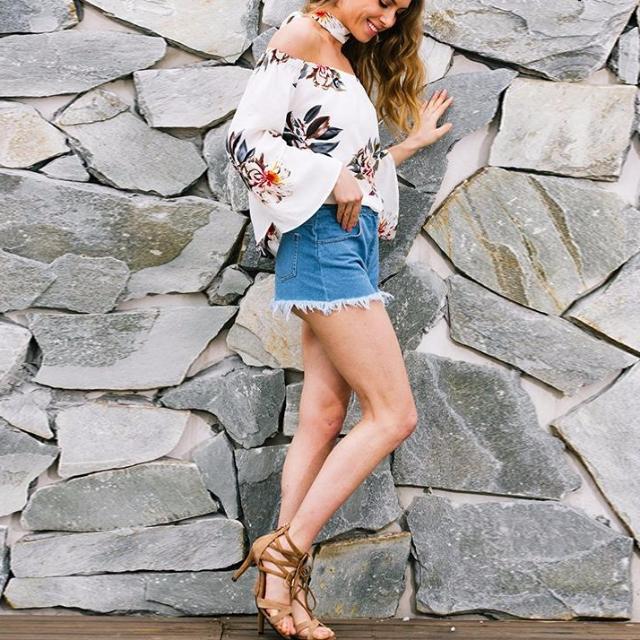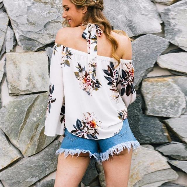 Floral Print Off-Shoulder Long-Sleeve Blouse