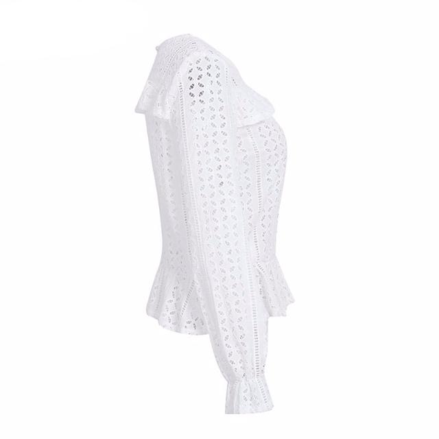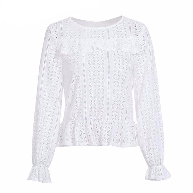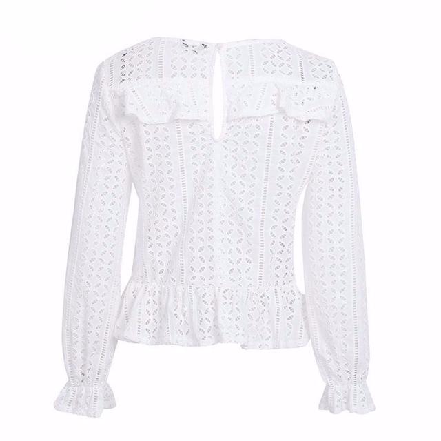 Long-Sleeve Lace White Blouse