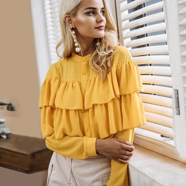 Long-Sleeve Ruffles Blouse - 2 Colors