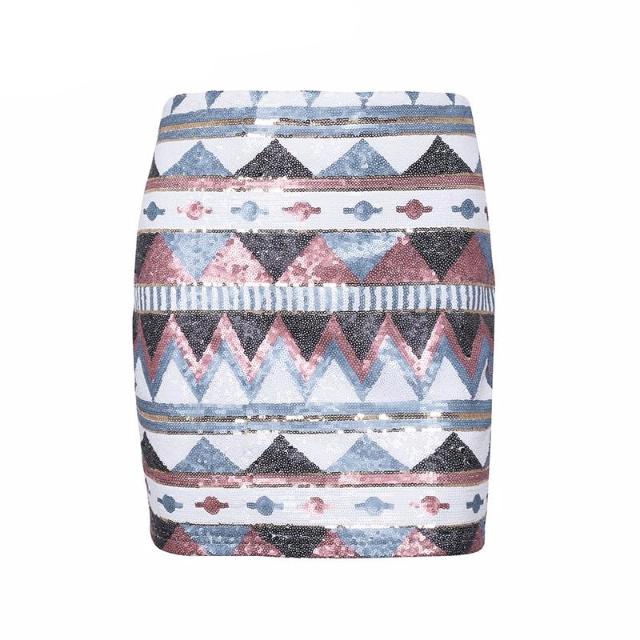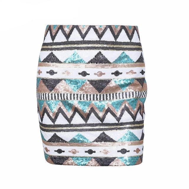 Aztec Print Sequins Pencil Skirt - 2 colors