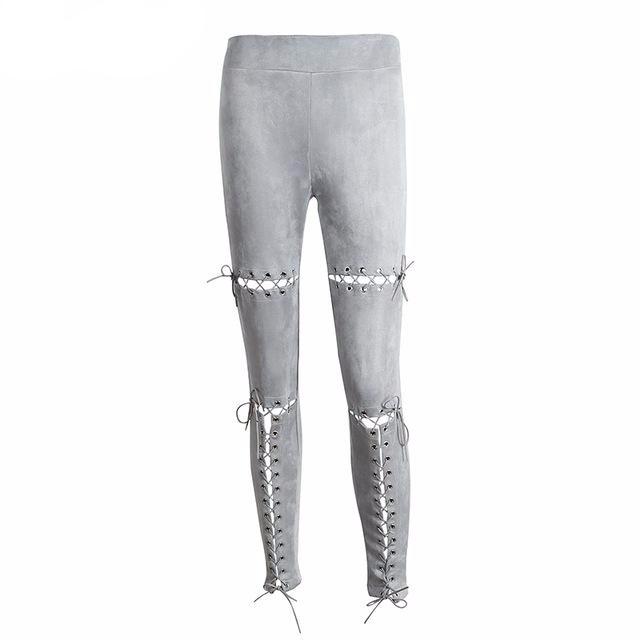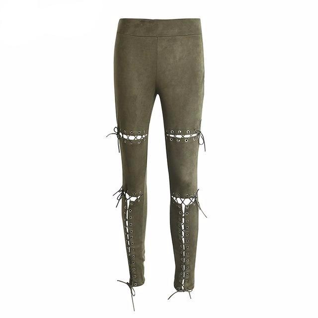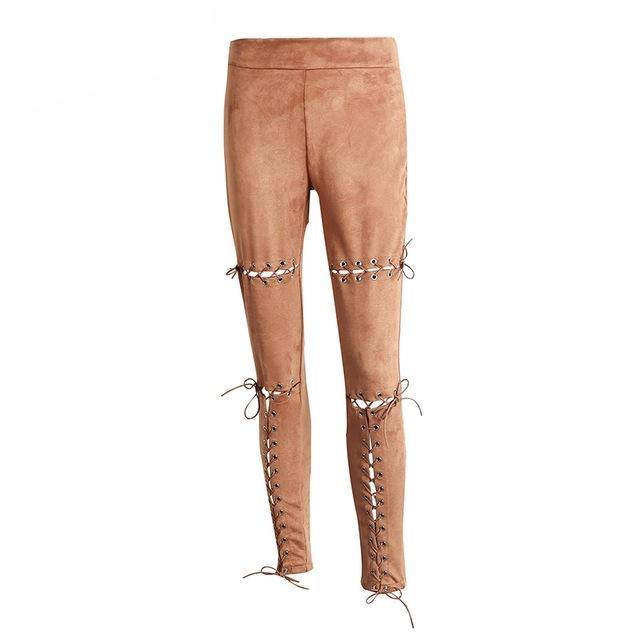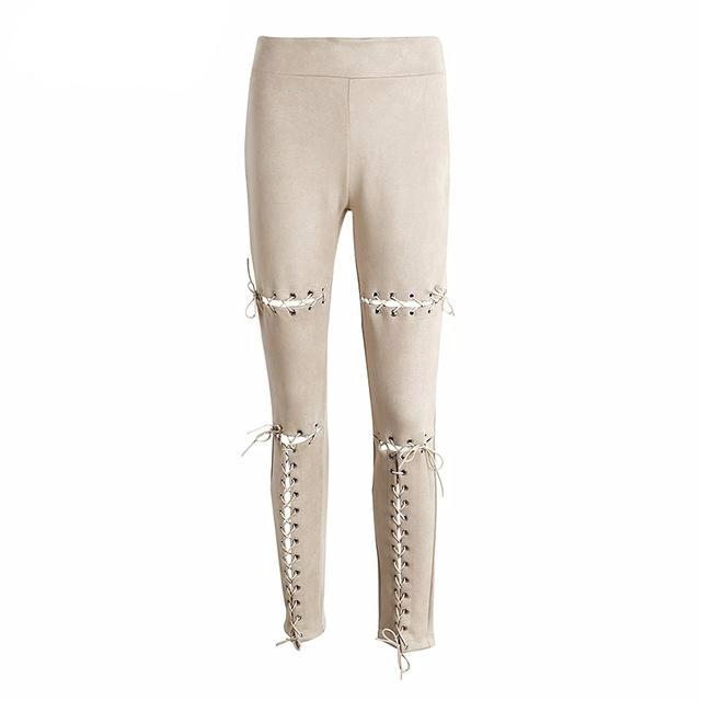 Lace-Up High-Waist Suede Pants - 6 Colors