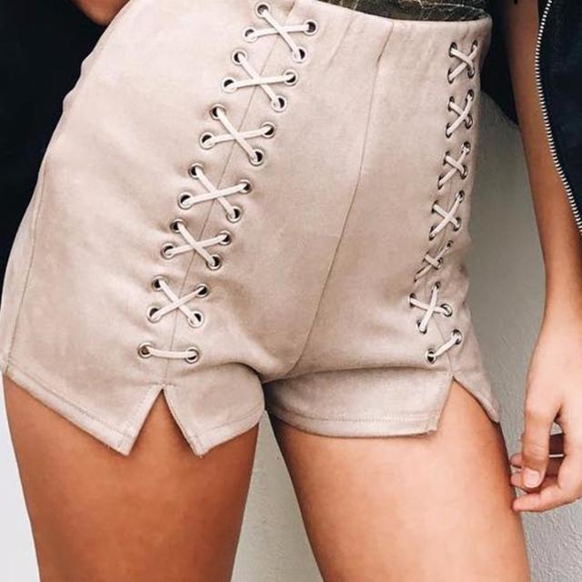 Lace-Up Leather & Suede Casual Shorts - 2 Colors