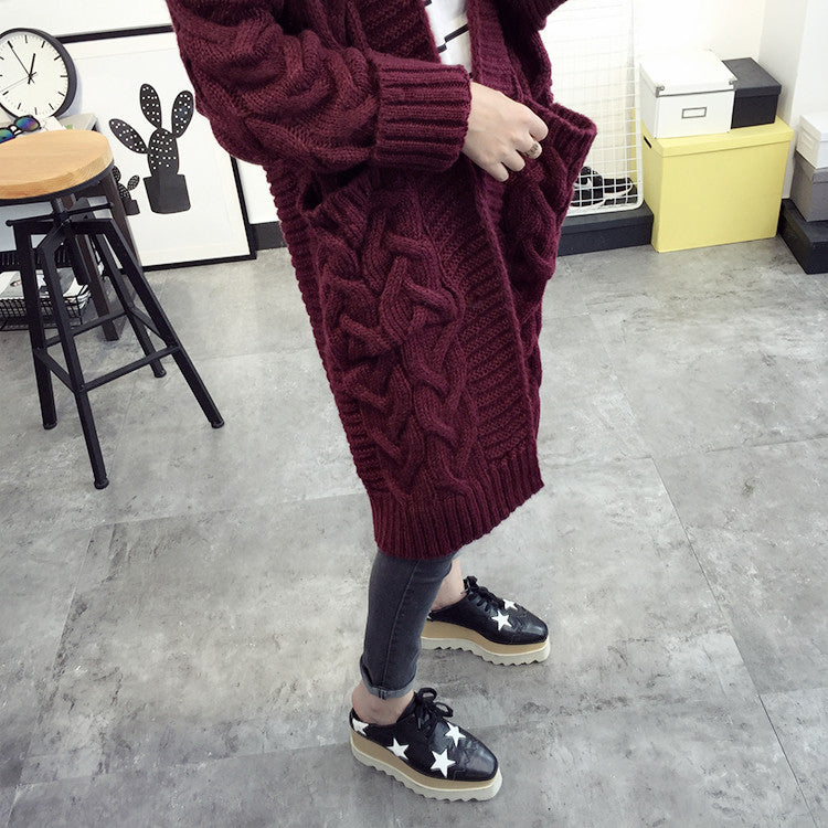 One Size Long Casual Long-Sleeve Cardigan - Red