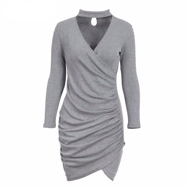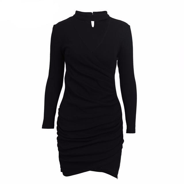 Halter V-Neck Long-Sleeve Dress - 3 Colors