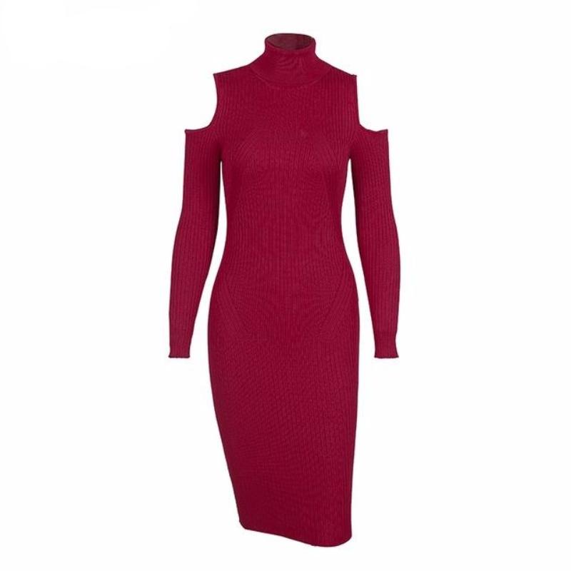 Cold Shoulder Turtleneck Dress - 5 Colors