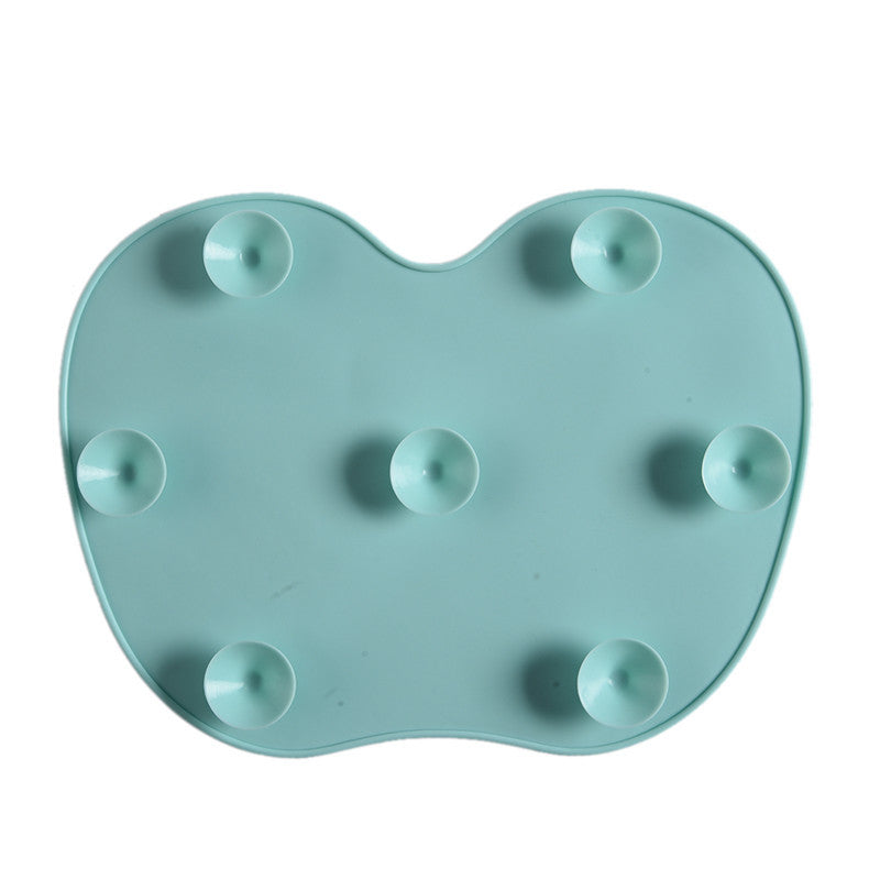 The mat includes suction cups on the backside for secure placement on flat surfaces.