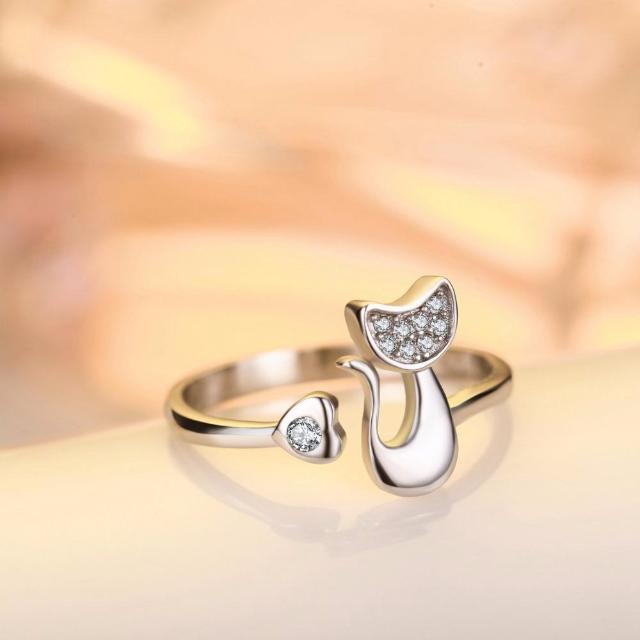 Cute Cat Silver Plated Resizable Ring