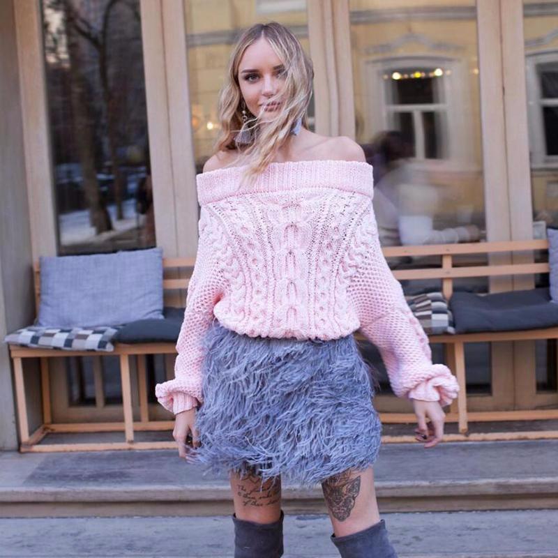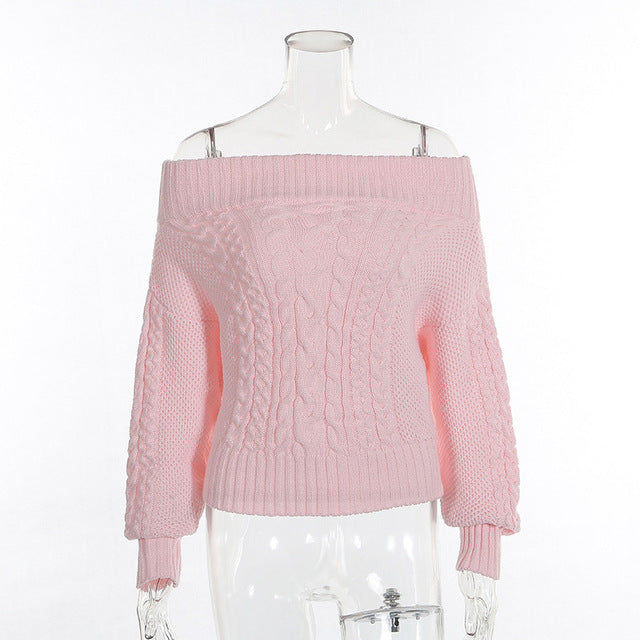 One Size Off Shoulder Loose Sleeve Sweater - Pink