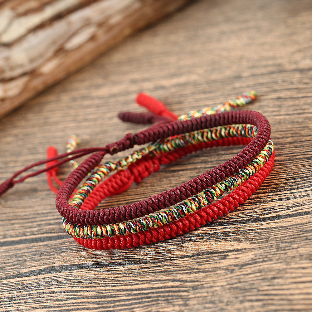 This beautiful Tibetan Buddhist Handmade Knots Bracelet is handmade by Tibetan Buddhist Monks. The knots are tied as they recite mantras to allow the bracelets to absorb the powerful spiritual energy such that the positive energy can flow into its bearer. These adjustable rope bracelets are worn to bring the wearer good luck and to attract all that is good.